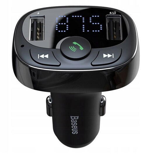 BASEUS bluetooth FM transmitter autós töltő 2 USB+microSD aljzat (12W, gyorstöltő) FEKETE Fekete, Baseus