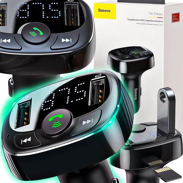 Baseus Fm Bluetooth Adó-vevő Autós Töltő MP3 2x Usb Sd/ Tf 3.4A (CCTM-01)