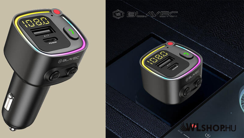 Blavec FM Transmitter, MP3 lejátszó, Bluetooth kihangosító, 1xUSB + 1xUSB-C, PD30W - Fekete (BTR02-01)