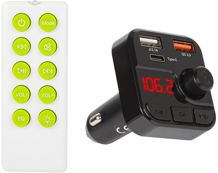 Specifikációk:- Bluetooth: 5.0 A2DP- Kijelző: LED- Öngyújtó aljzat kompatibilitás: DC 12-24V- Frekvenciatartomány: 87,5 - 108,0 MHz- Frekvenciastabilitás: +/-10ppm- Bemeneti feszültség: 5 V / 2,4 A- Töltő kimenete: 5 V / 3,1 A- Gyorstöltés: 3.0- MicroSD kártyahely: 32 GB (max. )- 3 m átviteli tartomány- Csatlakozók: USB, USB QC3.0, Type-C, microSD- Anyag: Fekvésmentes, nemes, nemes, nemes, nemes, nemes, nemes, nemes: ABSKiváló minőségű multifunkciós FM adó. A termék még a legegyszerűbb autórádió funkcionalitását is növeli, növelve az utazás kényelmét. Ezzel a készülékkel zenét is lejátszhat telefonon, pendrive-on, microSD memóriakártyán vagy bármilyen más Bluetooth-szal felszerelt eszközön keresztül. Az adó közvetlenül a 12-24 V-os szivargyújtó aljzatról táplálható. Főbb jellemzők: - Telefonhívások és hanglejátszás vezeték nélküli átvitele az autó sztereó FM rendszerére Bluetooth-on keresztül- Világos LED kijelző- MicroSD kártyaolvasás támogatása- Hangüzenetek és kihangosított