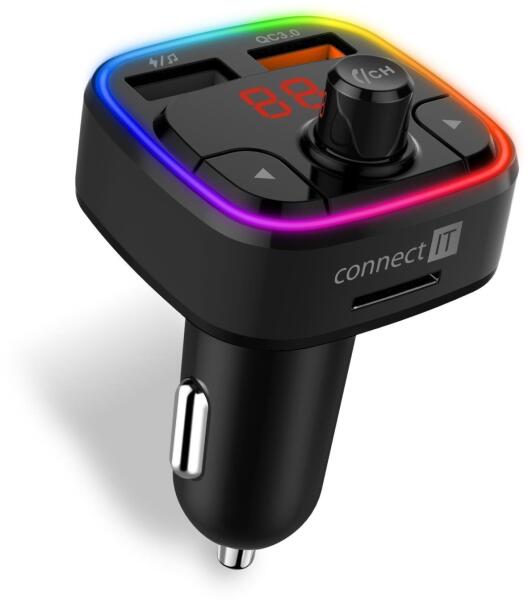 CONNECT IT CarRGB vezeték nélküli FM transzmitter, 2xUSB+MicroSD, FEKETE (CCC-9090-BK)