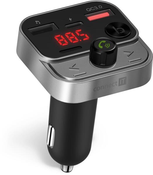 CONNECT IT InCarz Vezeték nélküli FM transzmitter, 2x USB-A + 1x USB-C, ANTRACITE (CCC-8900-AN)