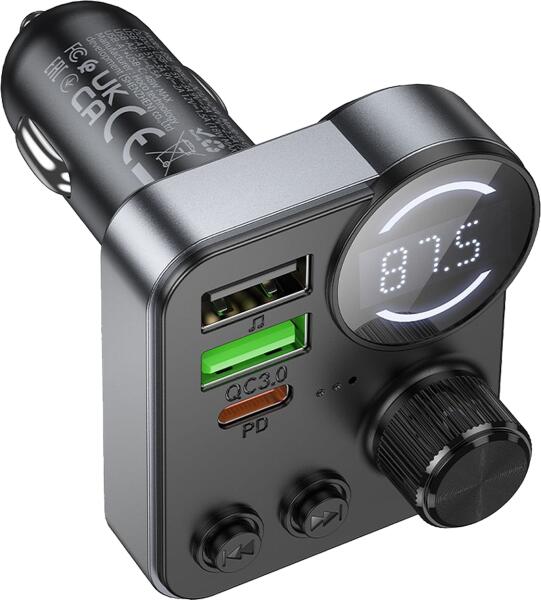 hoco. E86 Alegria FM bluetooth transmitter 2 x USB A + Type C PD QC3.0 48W E86 fekete