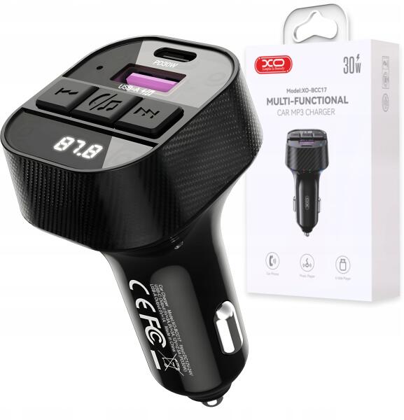 XO Autós gyorstöltő Bluetooth Usb Transmitter Usb-c Typ-c Pd 30W (BCC17)
