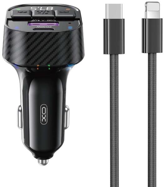 XO BCC17 FM transmitter 30W autós töltő Lightning kábellel (Fekete)