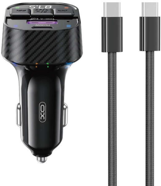 XO Bluetooth FM transmitter, 1xUSB 1xType-C csatlakozó / Type-C - Type-C kábellel, PD, 3A / 30W, BT5.3, fekete, XO-BCC17